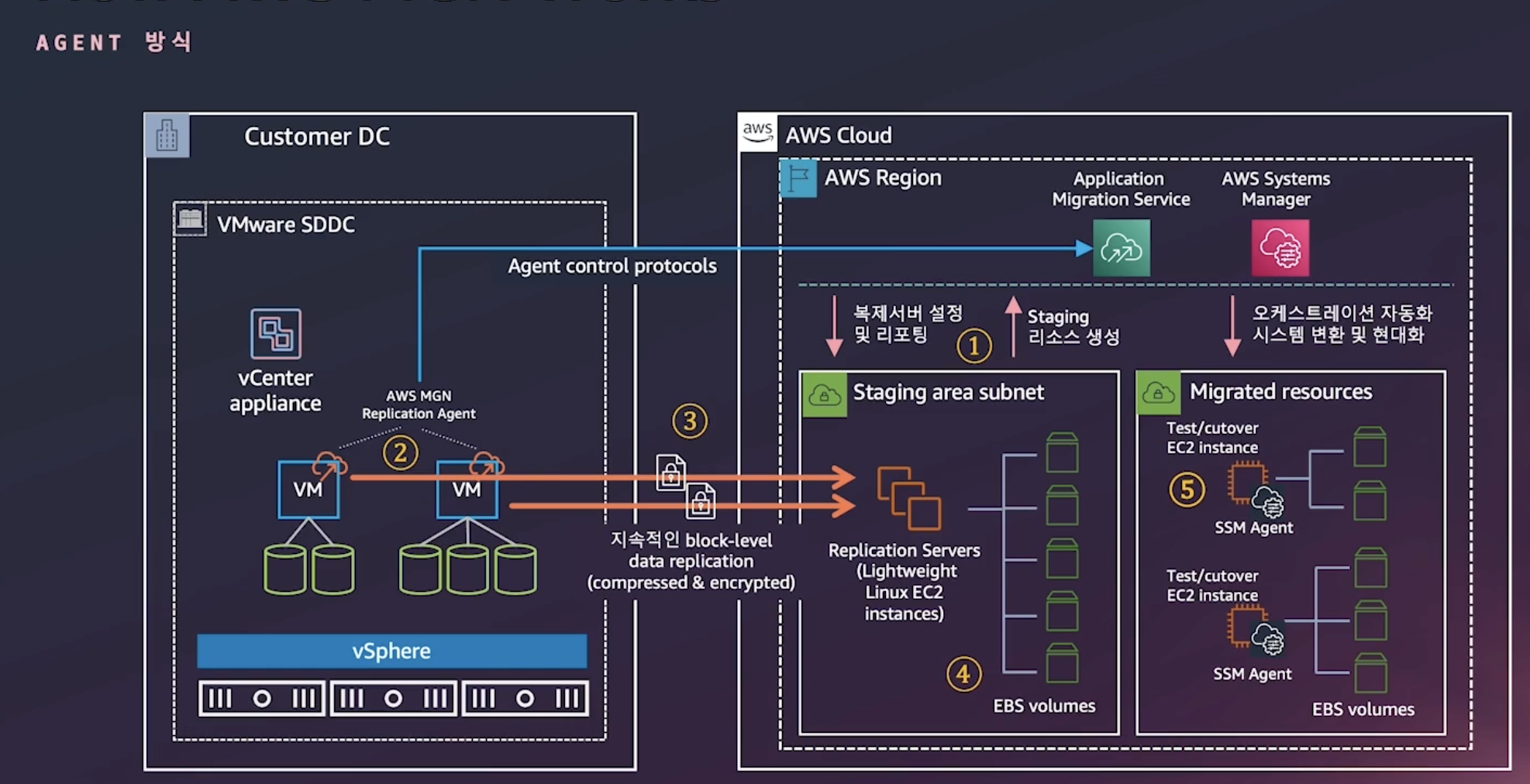5. AWS MGN 마이그레이션 방식에는 agent 방식과 agentless 방식이 있음 -> agent 방식이 권장됨.